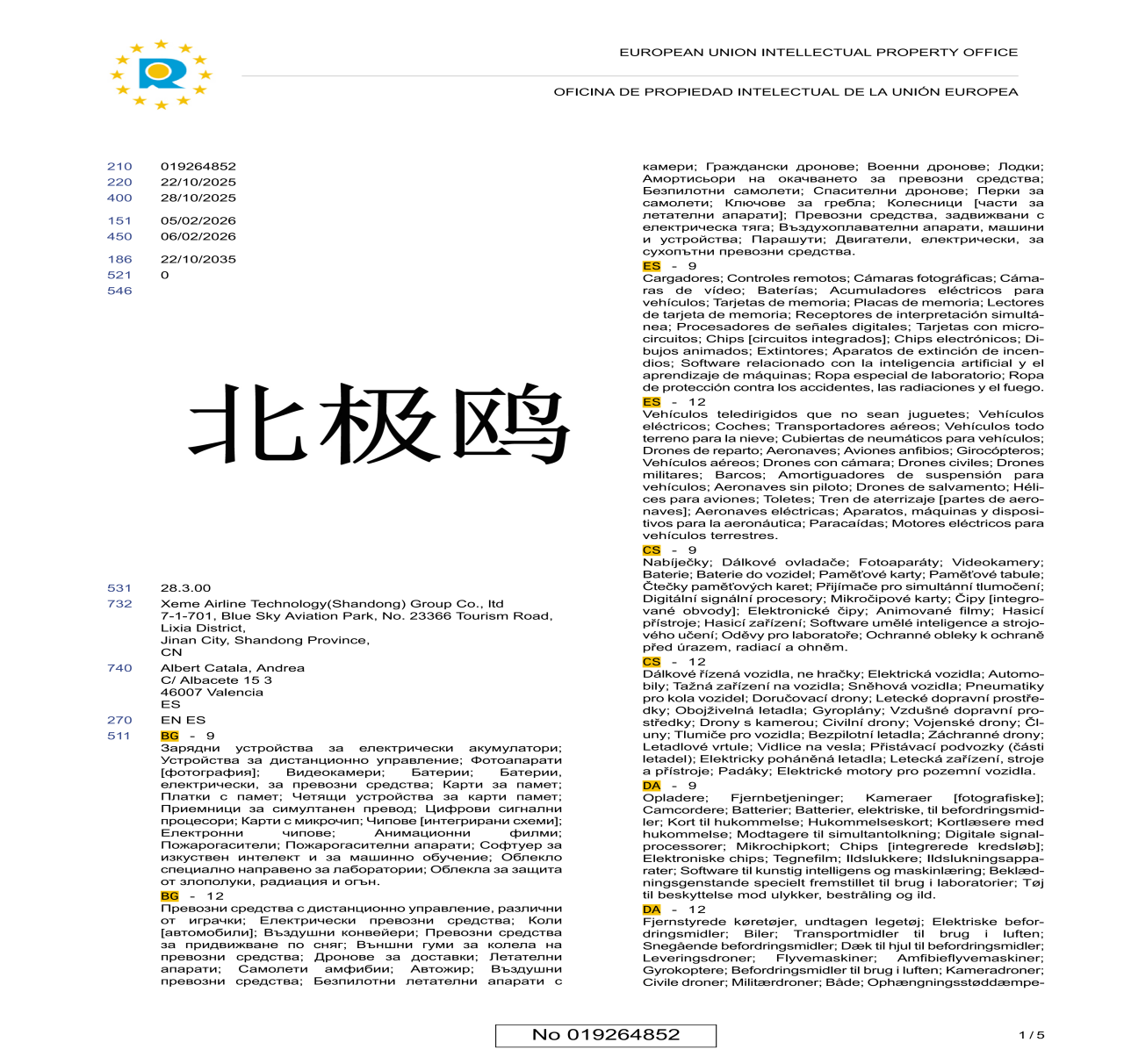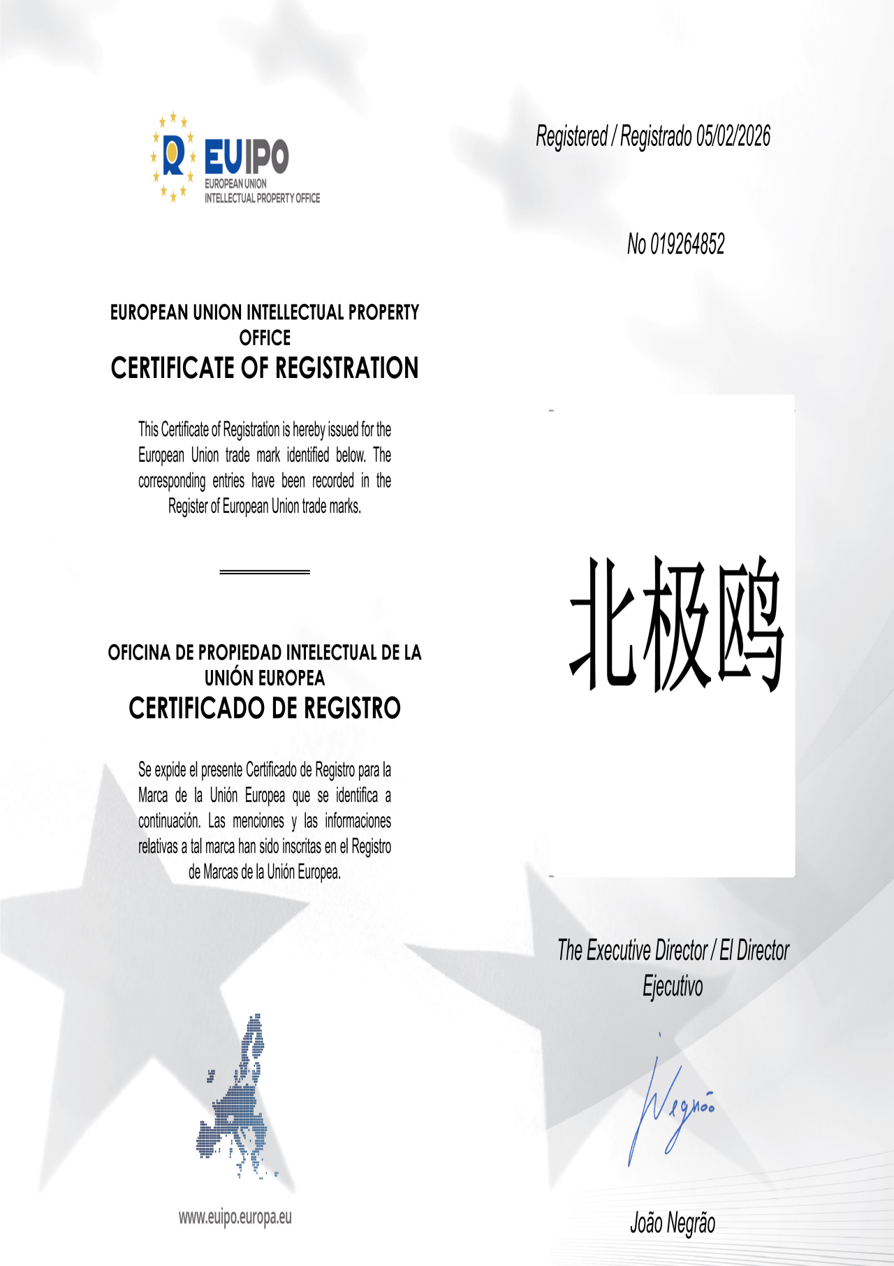 欧盟商标证书-北极鸥航空科技(山东)集团有限公司