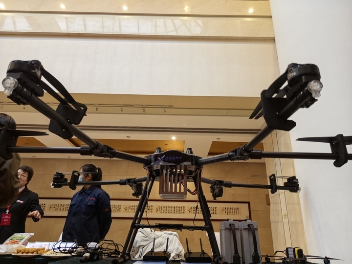 北极鸥航空科技(山东)集团有限公司是济南一家高科技企业,专业从事低空经济技术研究、提供各种垂直起降无人机和飞行汽车设计、制造、培训、航线运营等全方位的解决方案,此次参加项目对接,寻求金砖合作新机遇。活动展示现场,记者看到,该公司带来了大型多旋翼无人机等产品,有吊装用的、表演用的,还有小型穿越机,向国际商协会组织、企业等进行推介,吸引不少国外商家的关注。